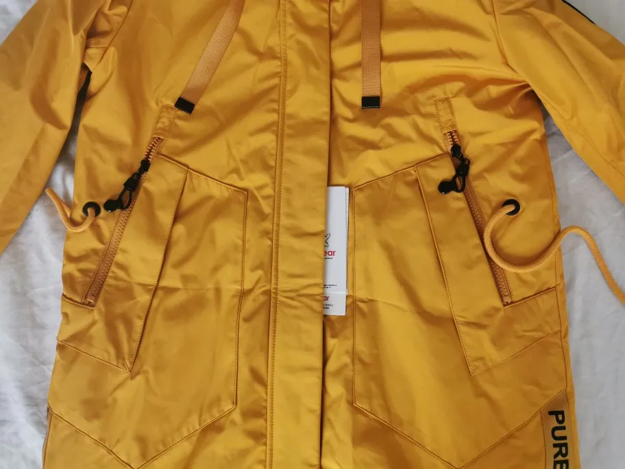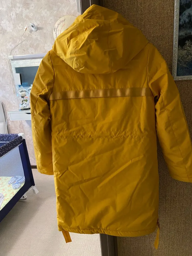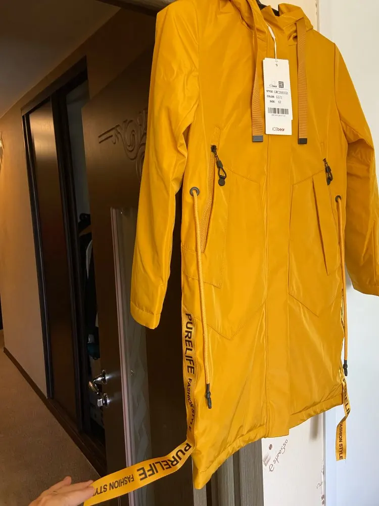 Доставка заняла две недели, хоть и выбирала доставку из Москвы... Сама куртка хорошая. Цвет жёлтый красивый, но не вырви глаз. Есть маленькое пятно на кармане, надеюсь, отстирается. Местами торчат нитки.