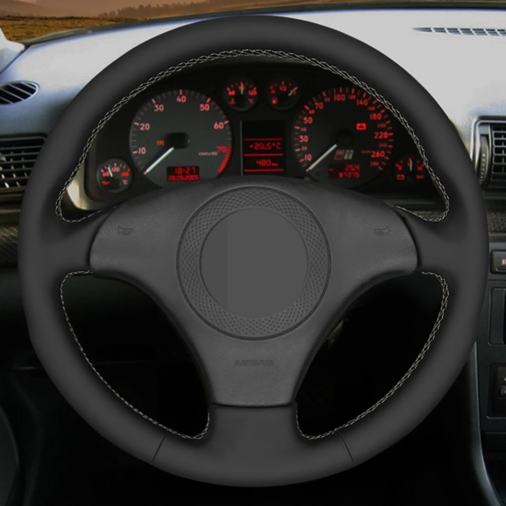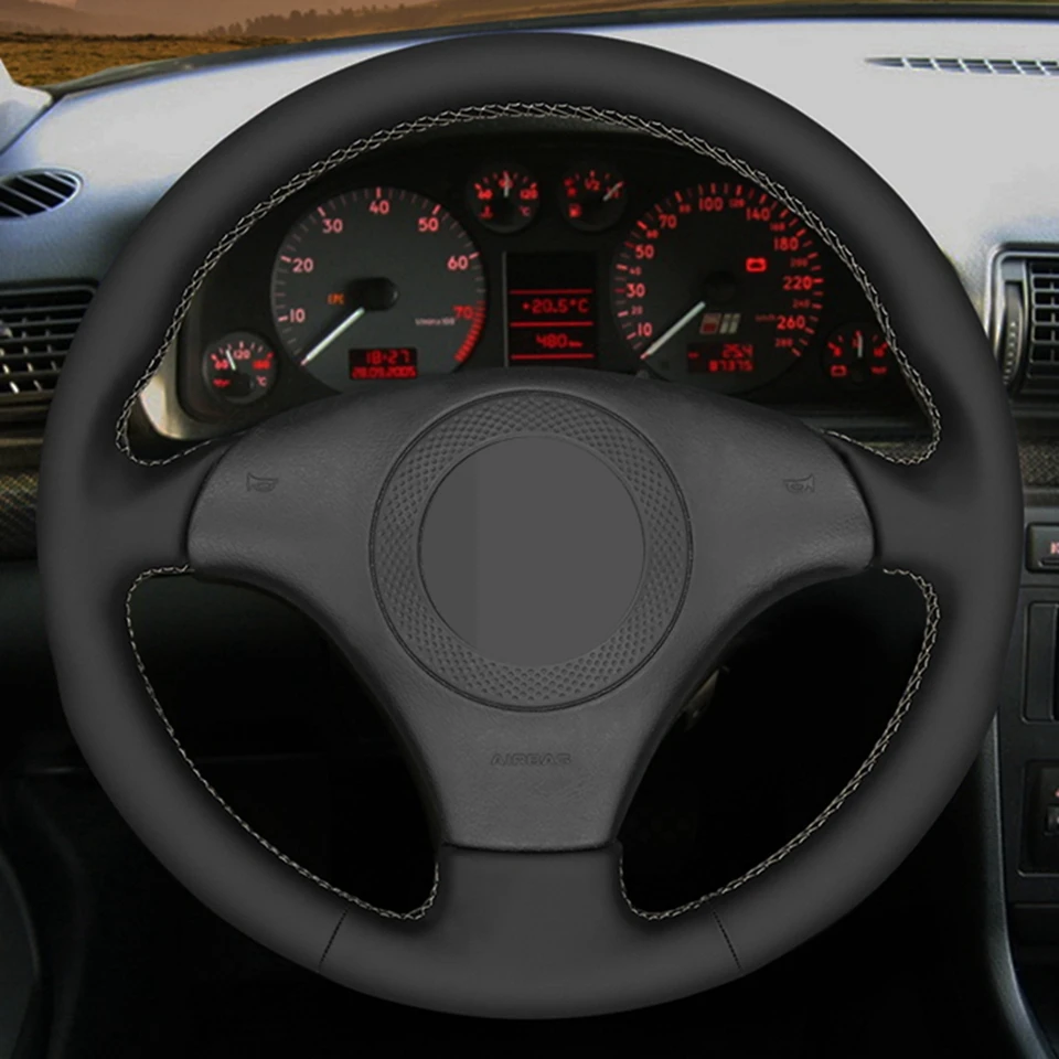 Чехол рулевого колеса автомобиля черная искусственная кожа ручной работы для Audi TT (8N) 1998-2001 A8 S8 (D2) S4 (B5) 1997-2001 S6 (C5)