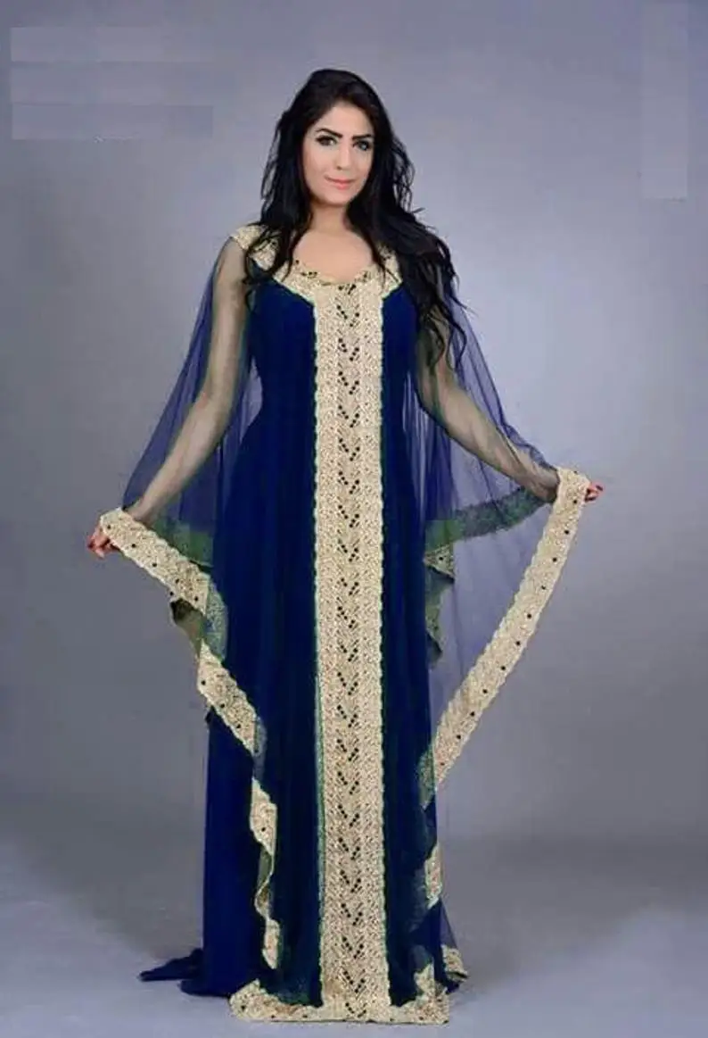 Ярко-синий, вечерние платья с вышивкой бисером, длинное арабское пл...