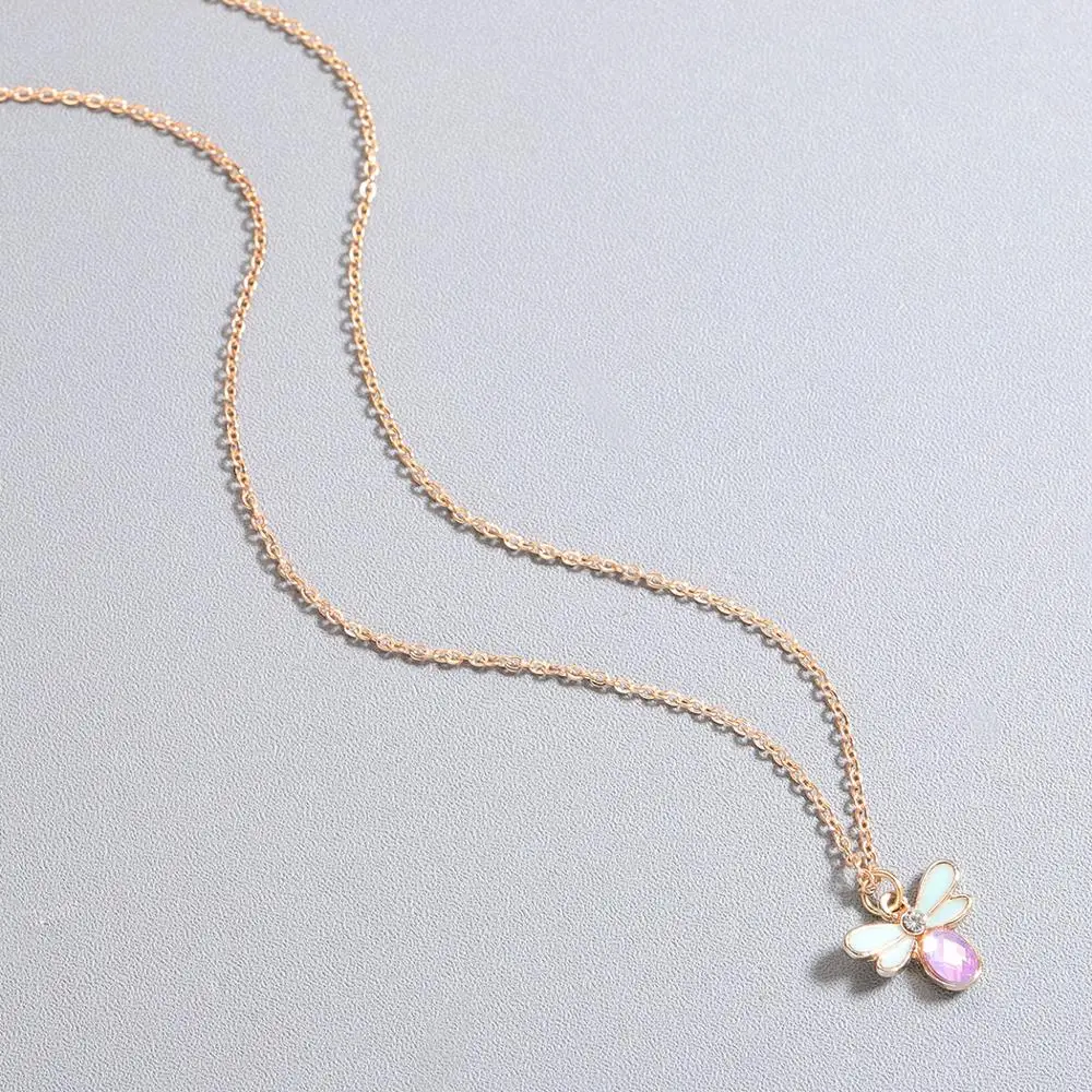Чандлер Стрекоза эмаль Капля воды Кристалл камни ожерелье изящные цепи Чокеры для женщин милый красочный Colier