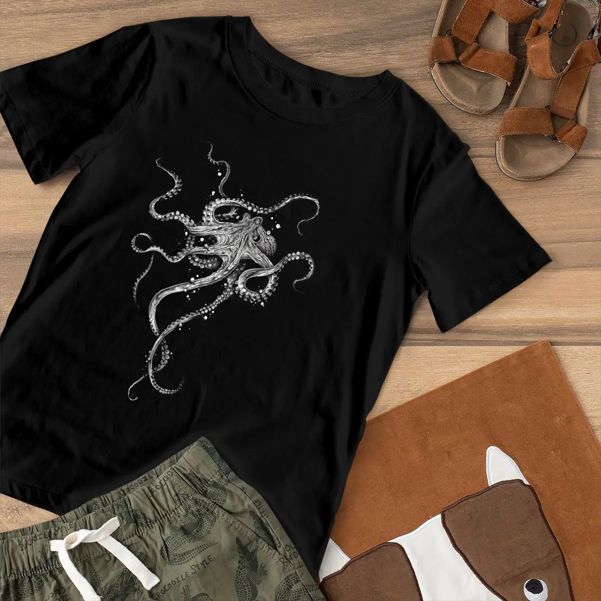 Футболка с осьминогом, простая Женская футболка из 100 хлопка, летняя женская футболка с коротким рукавом, размера плюс