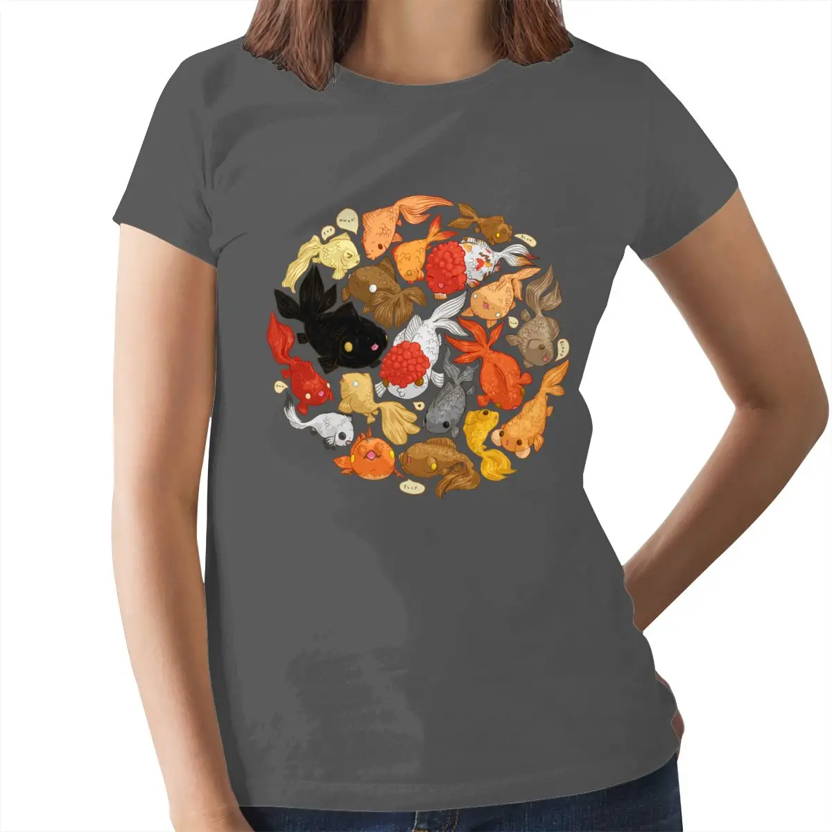 Футболка с изображением золотой рыбки для любителей золотой рыбки, фиолетовая Женская футболка из 100 хлопка, женская футболка