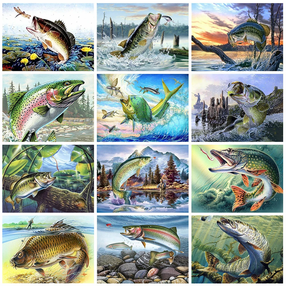 Алмазная вышивка сделай сам для рыбалки, вышивка крестиком, полная выкладка с изображением рыбы, воды, ресторана, домашний декор