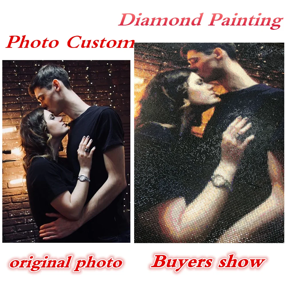 Алмазная вышивка HUACAN, фото на заказ, вышивка крестиком, полноразмернаякруглая алмазная живопись для влюбленных, родителей и цветов