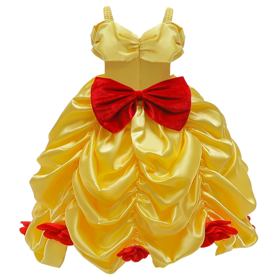 Красивое и чудовище, платье принцессы Белль для девочек, костюм Белль на Хэллоуин, Цветочная девушка, желтое фотографическое платье для девушек