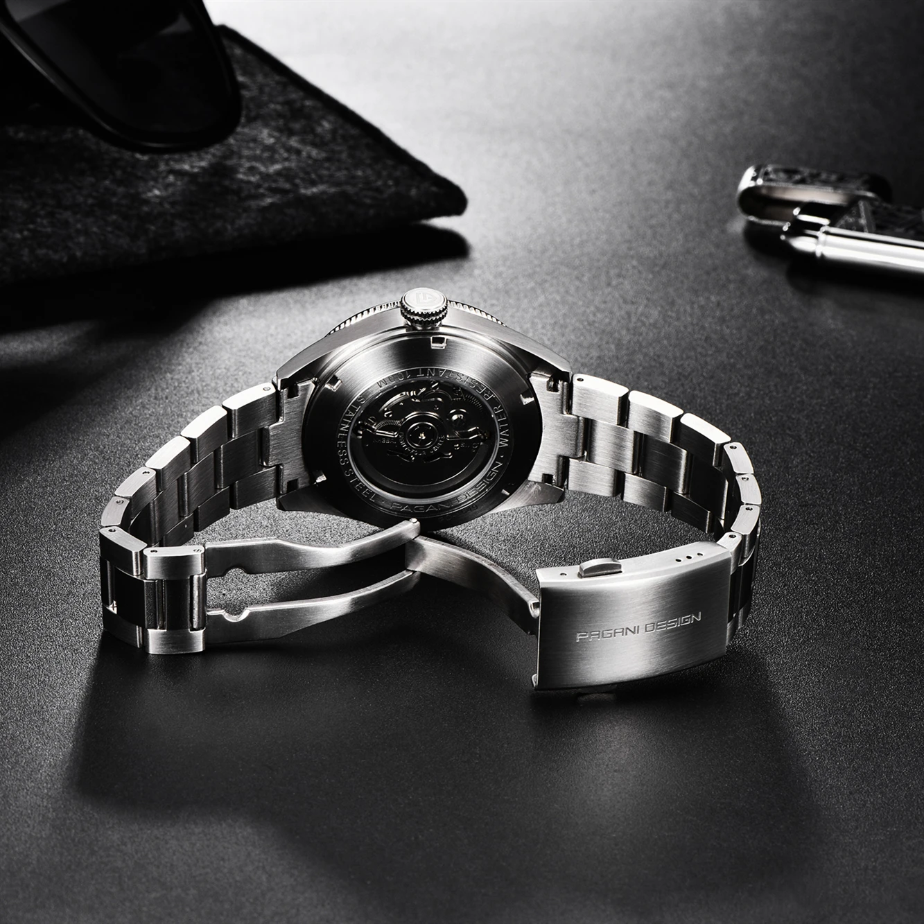 Часы PAGANI Мужские механические Автоматические, дизайнерские брендовые Роскошные с сапфировым стеклом, Водонепроницаемость 100 м, t