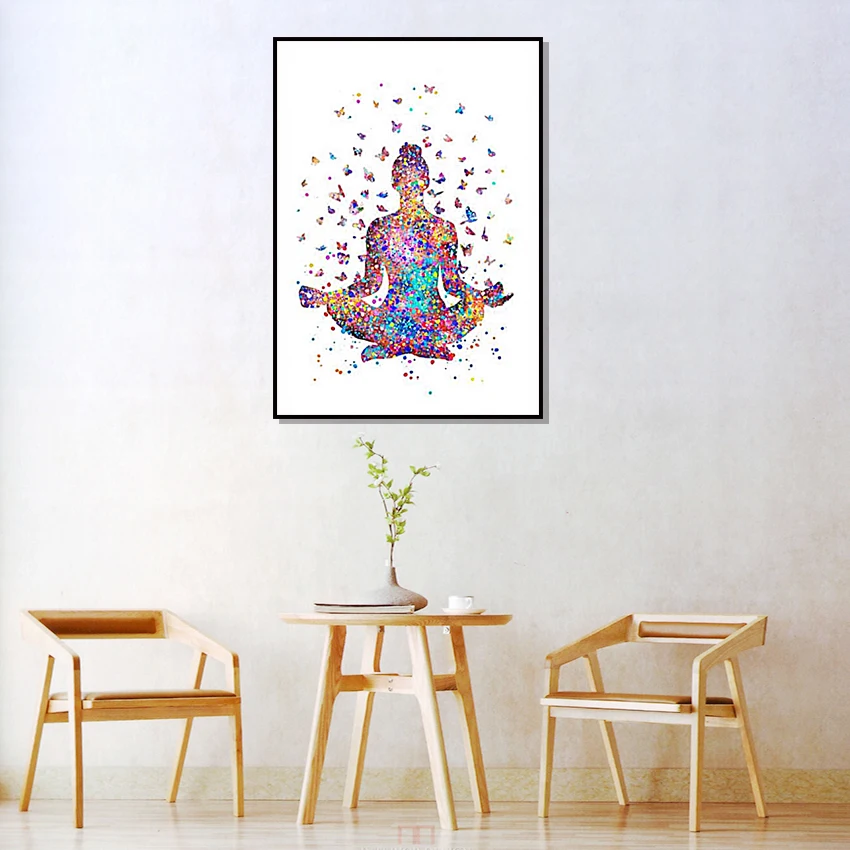 Водонепроницаемая чернильная Картина на холсте с изображением бабочки и позы йоги без каркаса для студийной йоги для дома гостиной Искусство декоративный настенный плакат подарок