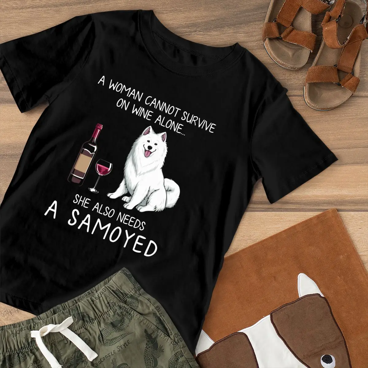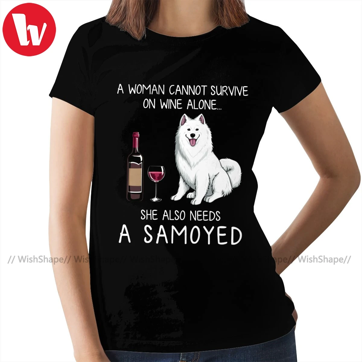 Женская футболка с рисунком собаки самоеда и вина, модная розовая футболка с графическим принтом, 100, хлопчатобумажная женская футболка
