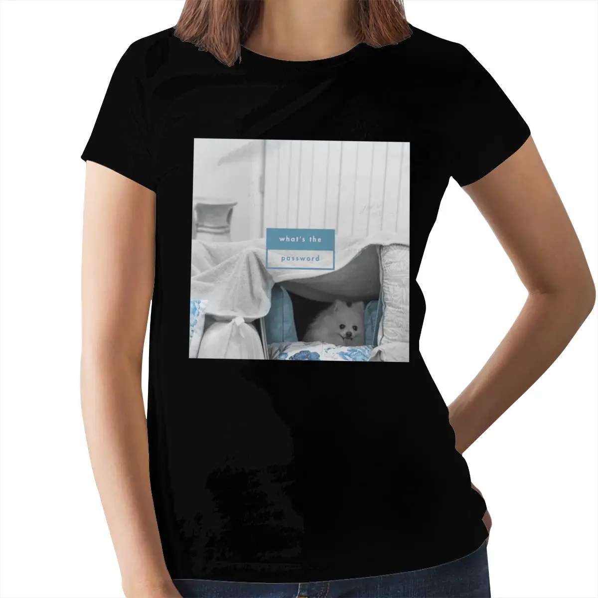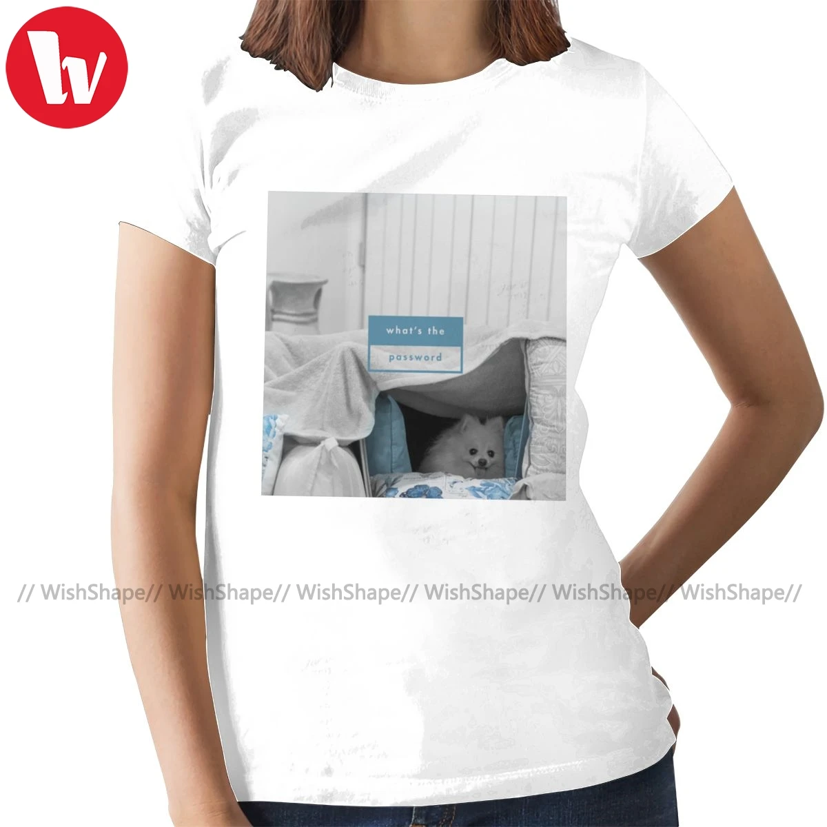 Футболка с изображением померанского шпица, белая футболка с собакой, хлопковая черная женская футболка с круглым вырезом и принтом, большая женская футболка