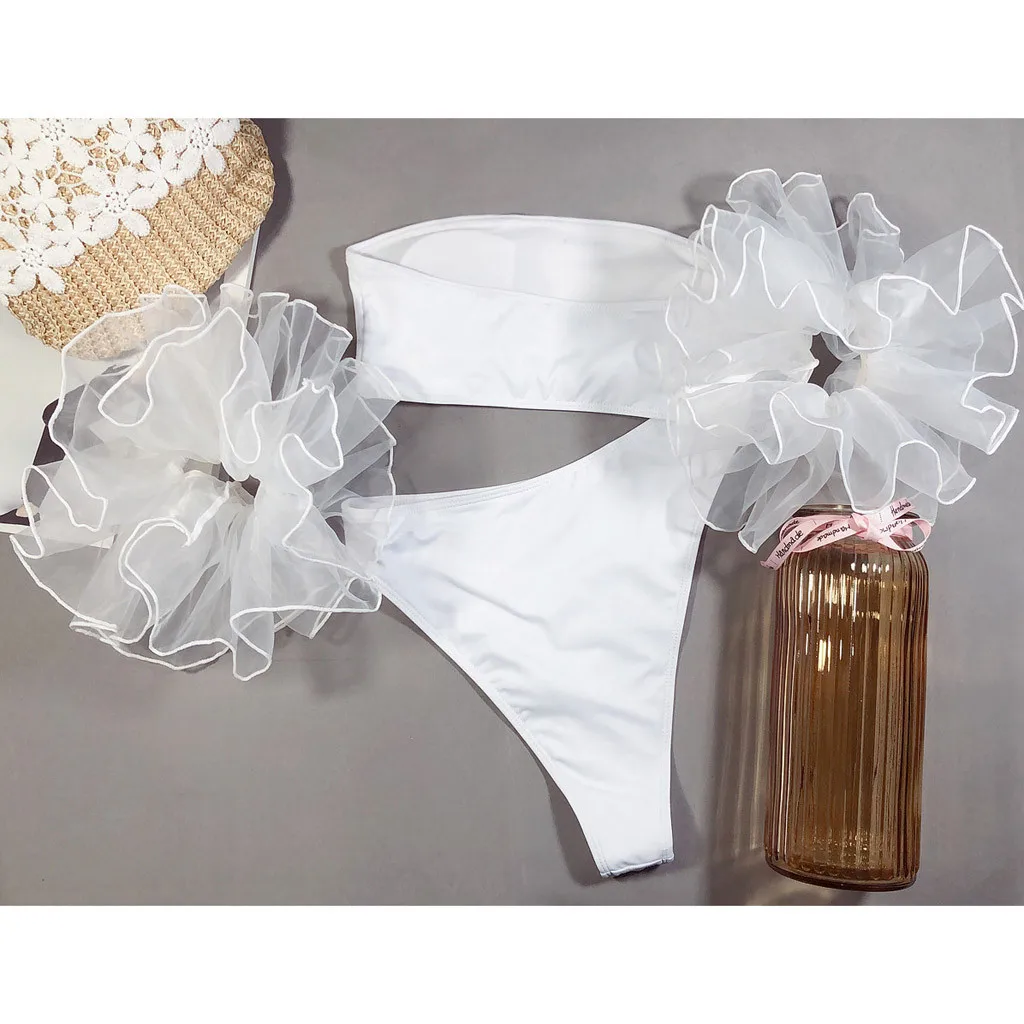 Купальник-бикини женский с пуш-ап, пикантное бандо, пляжные стринги, сетчатый купальный костюм из двух предметов, с открытыми плечами, 2021, 2021