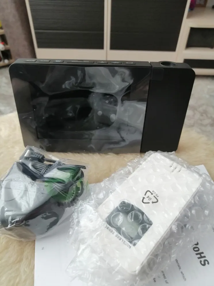 Внешний датчик, который не работает. Продавец отправляет мне нормально. Дисплей проектора на потолке очень яркий, чтобы быть помещенным в комнату и иметь возможность спать в темноте. Жаль, что Яркость проектора не падает, как на экране. В противном случае в целом это не так уж плохо