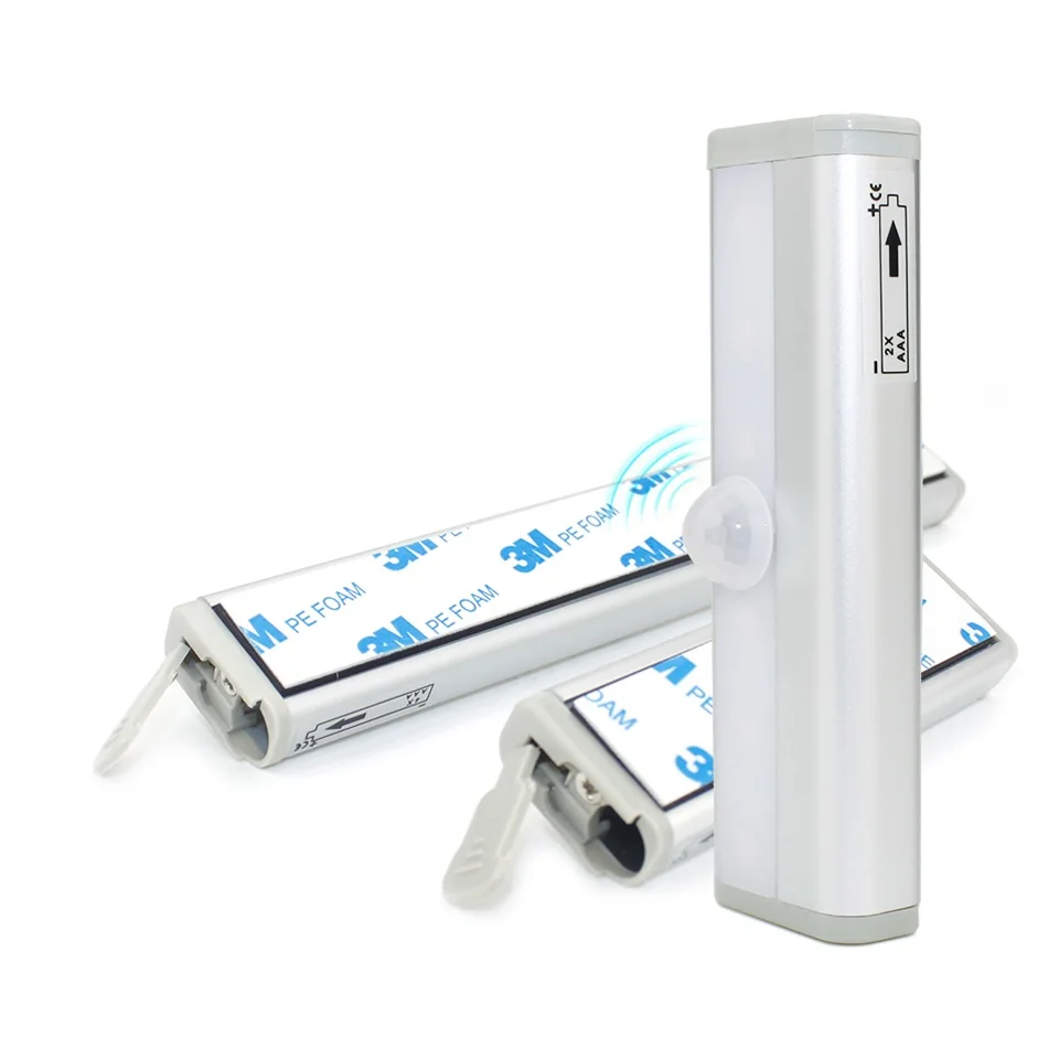 Беспроводной светильник для шкафа с датчиком движения, 6 светодиодов, 10 светодиодов, на батарейках, настенная лампа для шкафа, ночсветильник для кухни