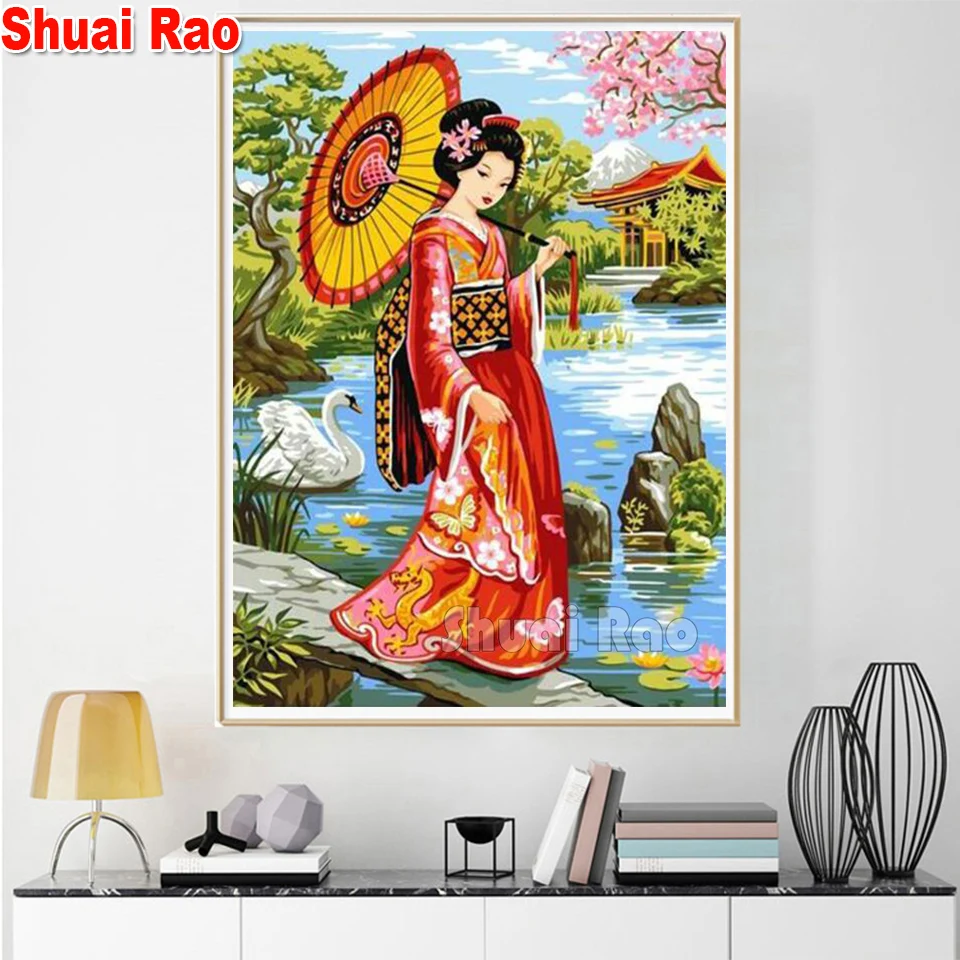 Для ручной алмазной росписи для женщин, японская Алмазная вышивка, 5D сделай сам, полная квадратная Круглая Мозаика, кимоно для девушек, декоративный дом