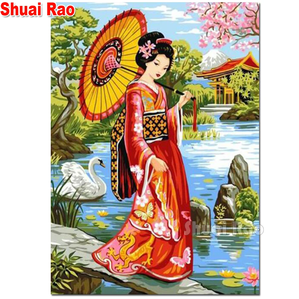 Для ручной алмазной росписи Женская японская Алмазная вышивка 5D «сделай сам» полная квадратная Круглая Мозаика кимоно девушка декоративное для дома