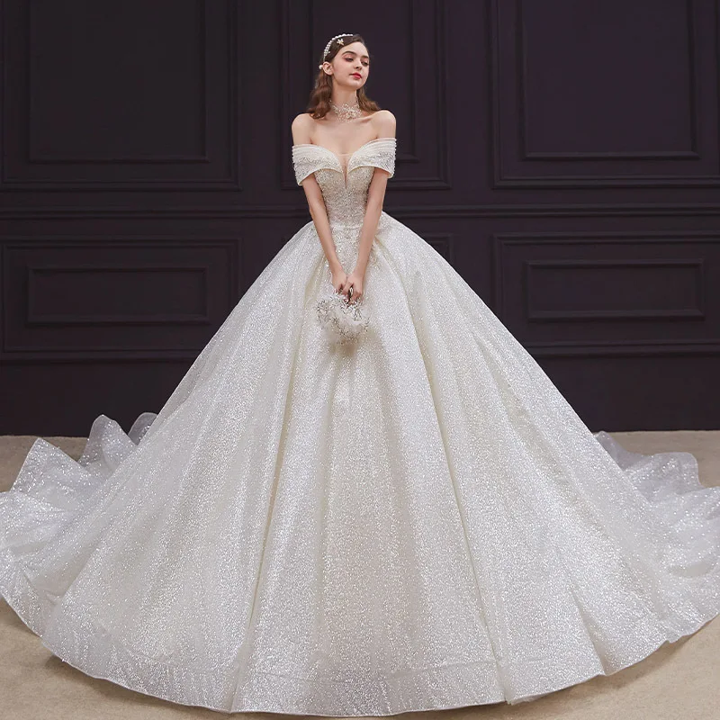 Женское свадебное платье SSYFashion, роскошное кружевное платье с вырезом лодочкой и блестками, индивидуальный пошив