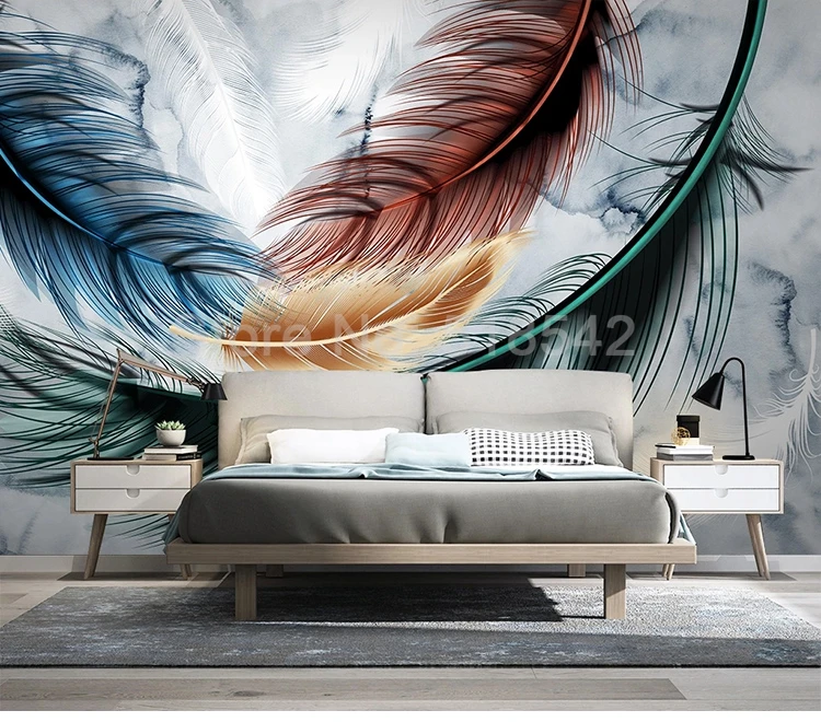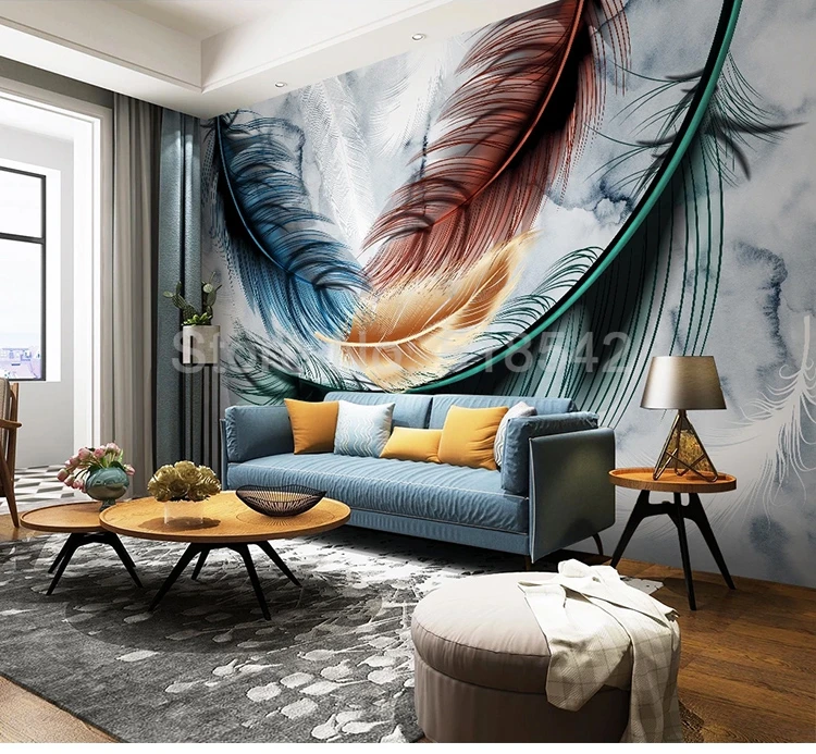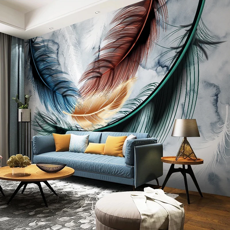 3D обои на заказ, абстрактная роспись перьев, роспись гостиной, спа...
