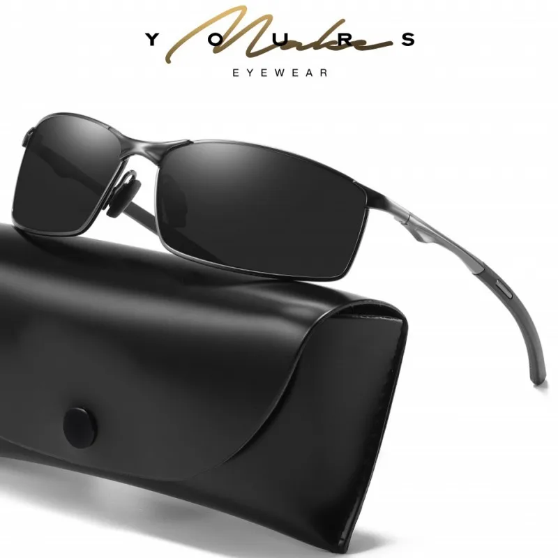 Мужские солнцезащитные очки с поляризацией, в металлической оправе