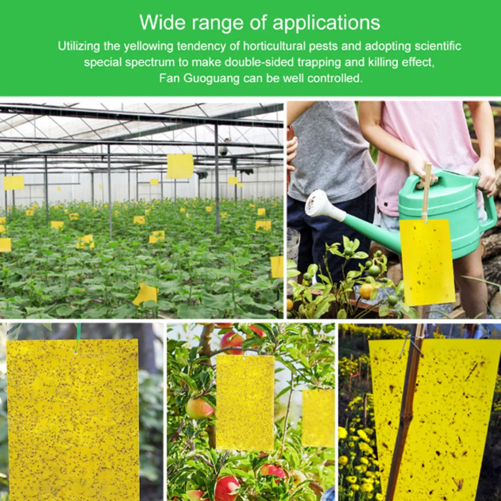 Специально разработан для летающих вредителей растений, которые любят желтый цвет и легко ловят их. Широко захватывает тли, Майнер листьев, грибковые гнаты, трипы, Белые мухи, черные мухи, мошки, Комары и другие летающие насекомые.