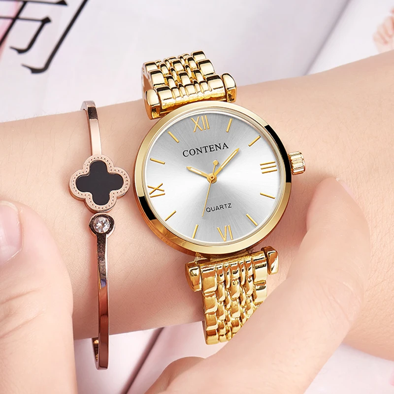 Женские часы CONTENA, модные простые брендовые роскошные серебряные...