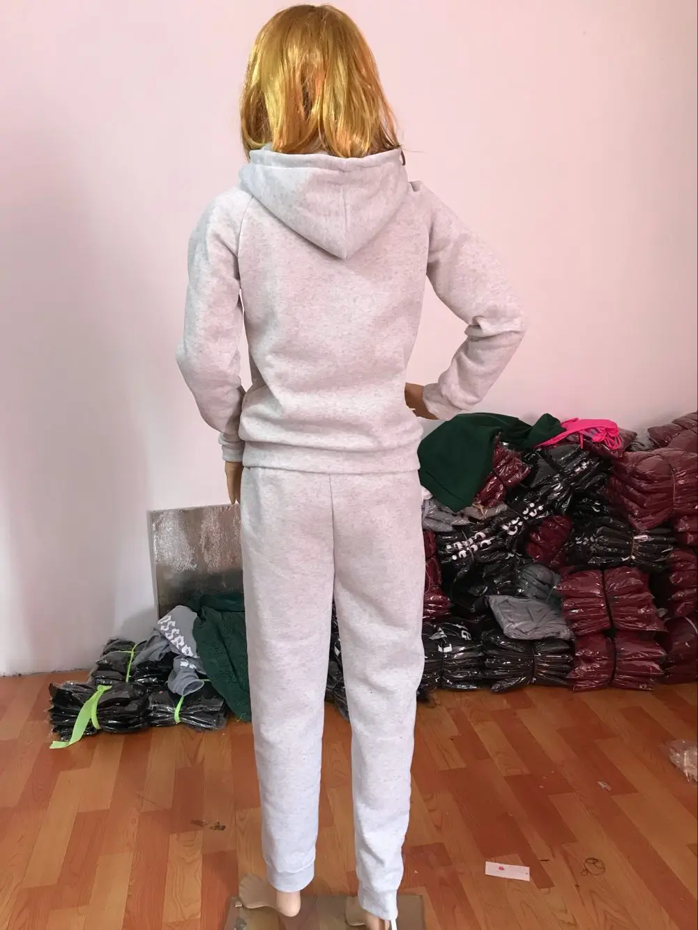 Женский осенний костюм, однотонный флисовый костюм с капюшоном с дл...