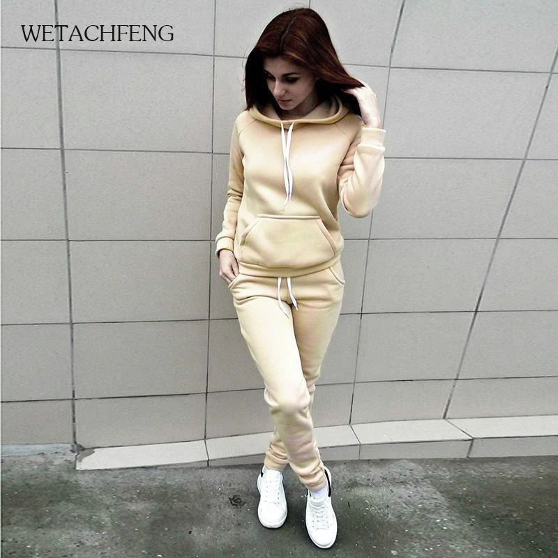 Женский Повседневный комплект из 2 предметов, теплый однотонный спо...