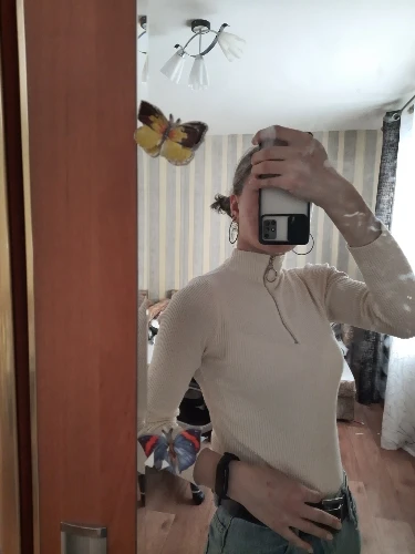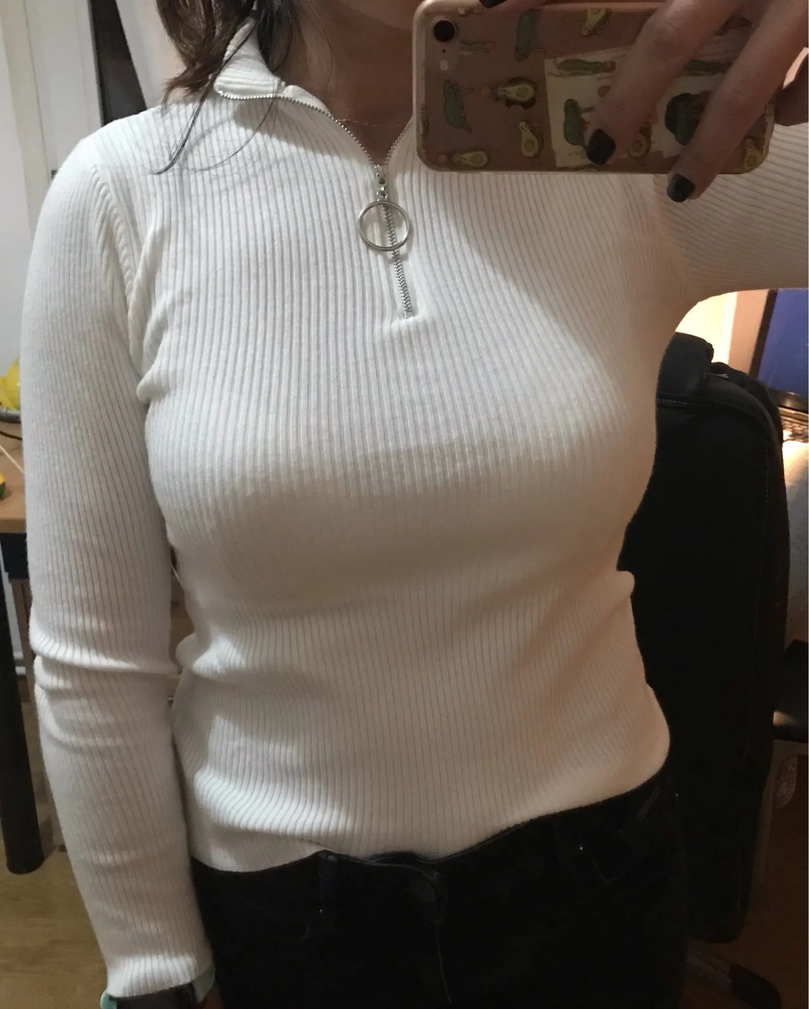 Кофта пришла за 10 дней в Ярославль, изначально заказала не тот цвет, но договорилась с продавцом и за это отдельный плюс. Сама кофта тонкая и просвечивает, но я это знала поэтому для меня это не проблема. К телу приятная, замочек ходит хорошо