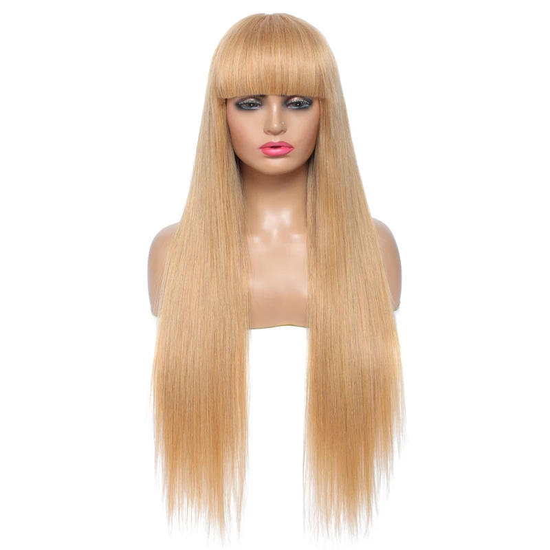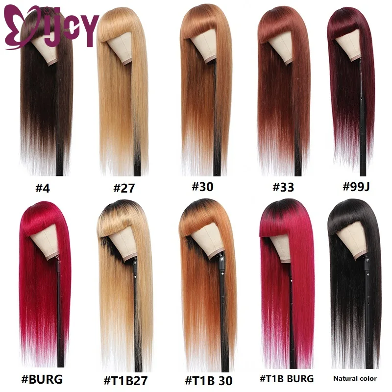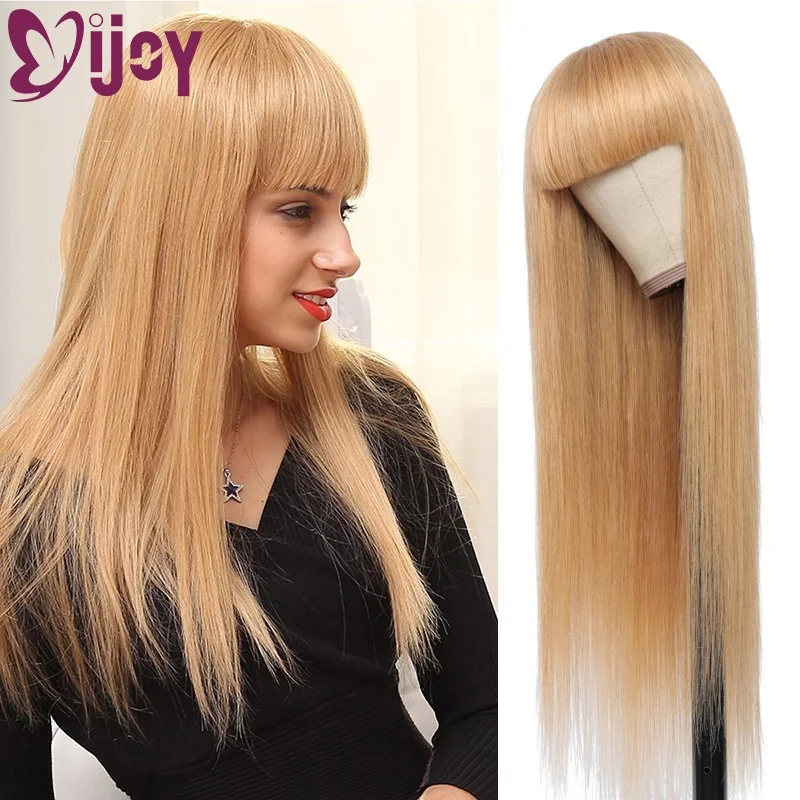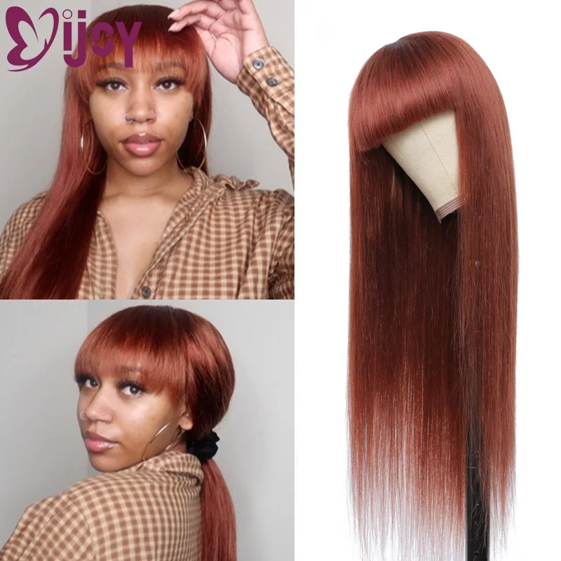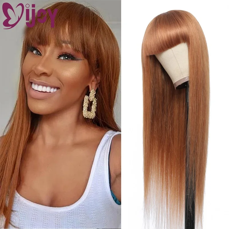 Парики IJOY из прямых бразильских натуральных волос с челкой для чернокожих женщин, черные и коричневые, машинное изготовление
