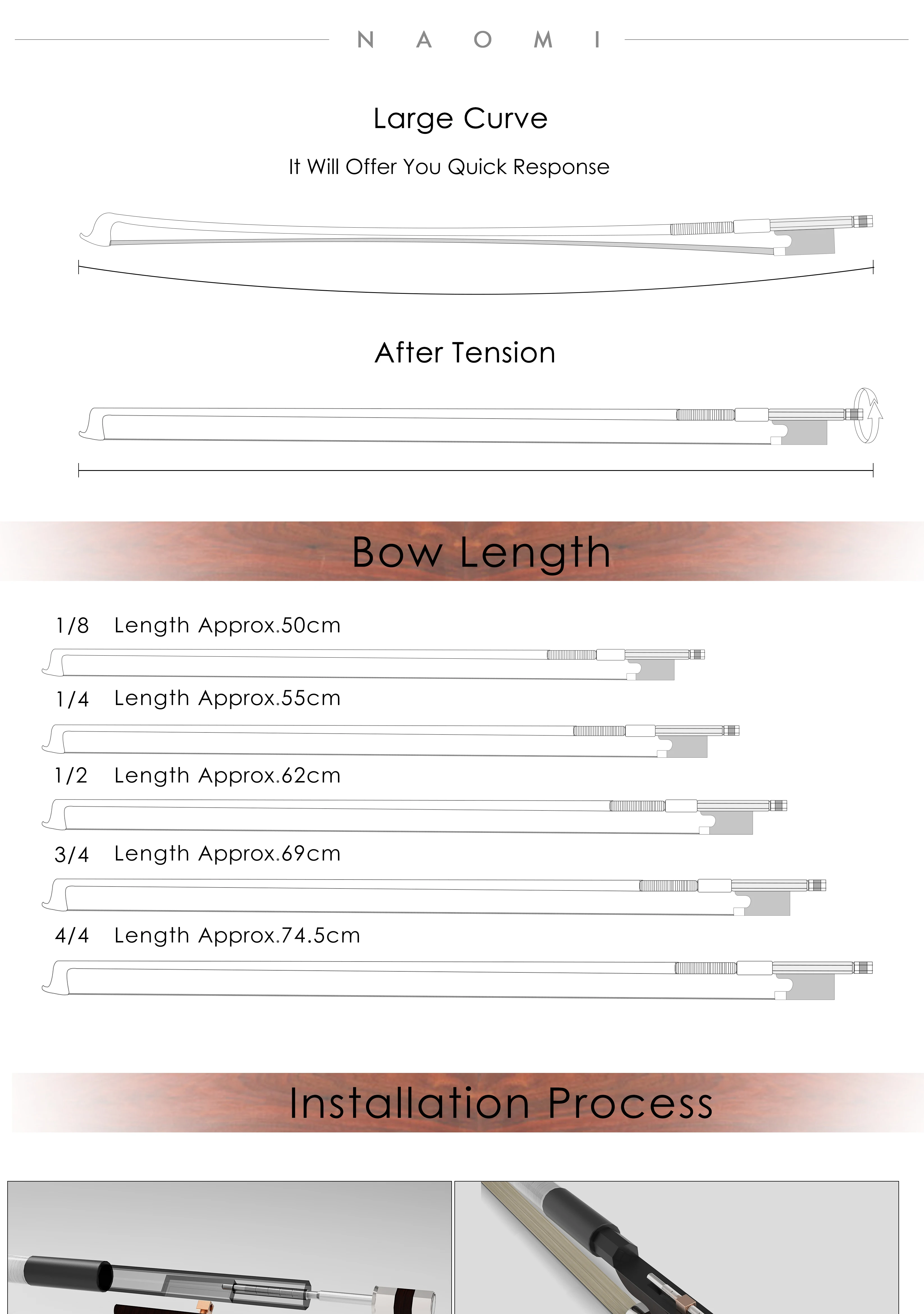 NAOMI Master Grade 44 полноразмерный бант для скрипки Pernambuco W ...