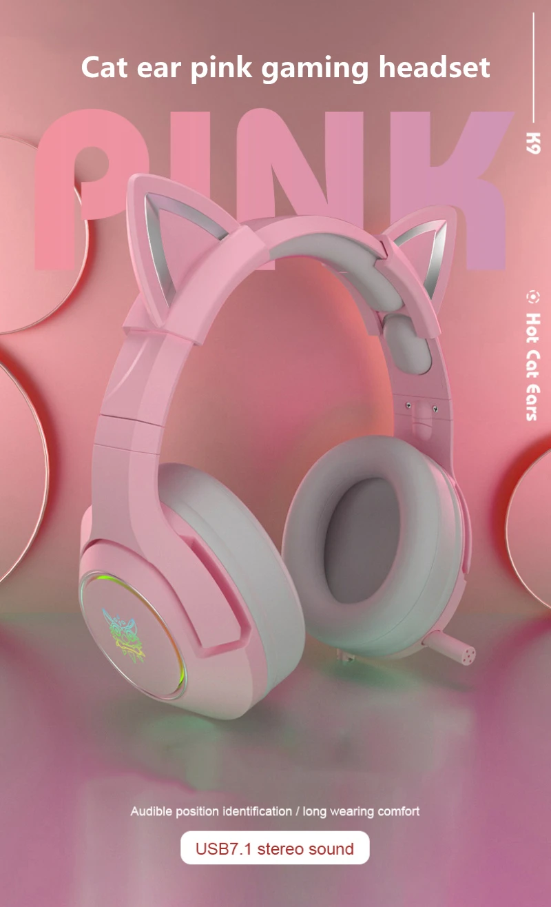 Беспроводная игровая гарнитура K9 с кошачьими ушками, с микрофоном, HiFi, 7,1 каналов, игровая Музыкальная гарнитура для компьютера, ноутбука