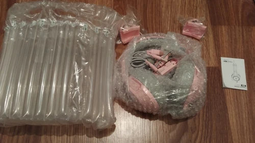 Посылка пришла в отличном состоянии, за 20+ дней. Usb 3.5 и мини-джеки входят плотно, ничего не шатается. Амбушюры очень мягкие, охватывают все ухо и не давят. Наушники большие, на голову давления нет (за 6 часов стриминга в них, голова не болела). Провод длинный (около 2 м). Ушки сделаны из силикона и снимаются :) Микрофон немного тихий и шумит, но это не принципиально. Звук приятный. Подсветка работает. В целом, гарнитура очень качественная и красивая, особенно подойдёт для геймеров. Не пожалела о покупке! Спасибо! :)