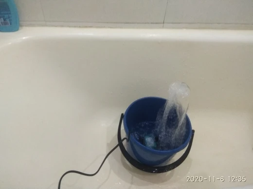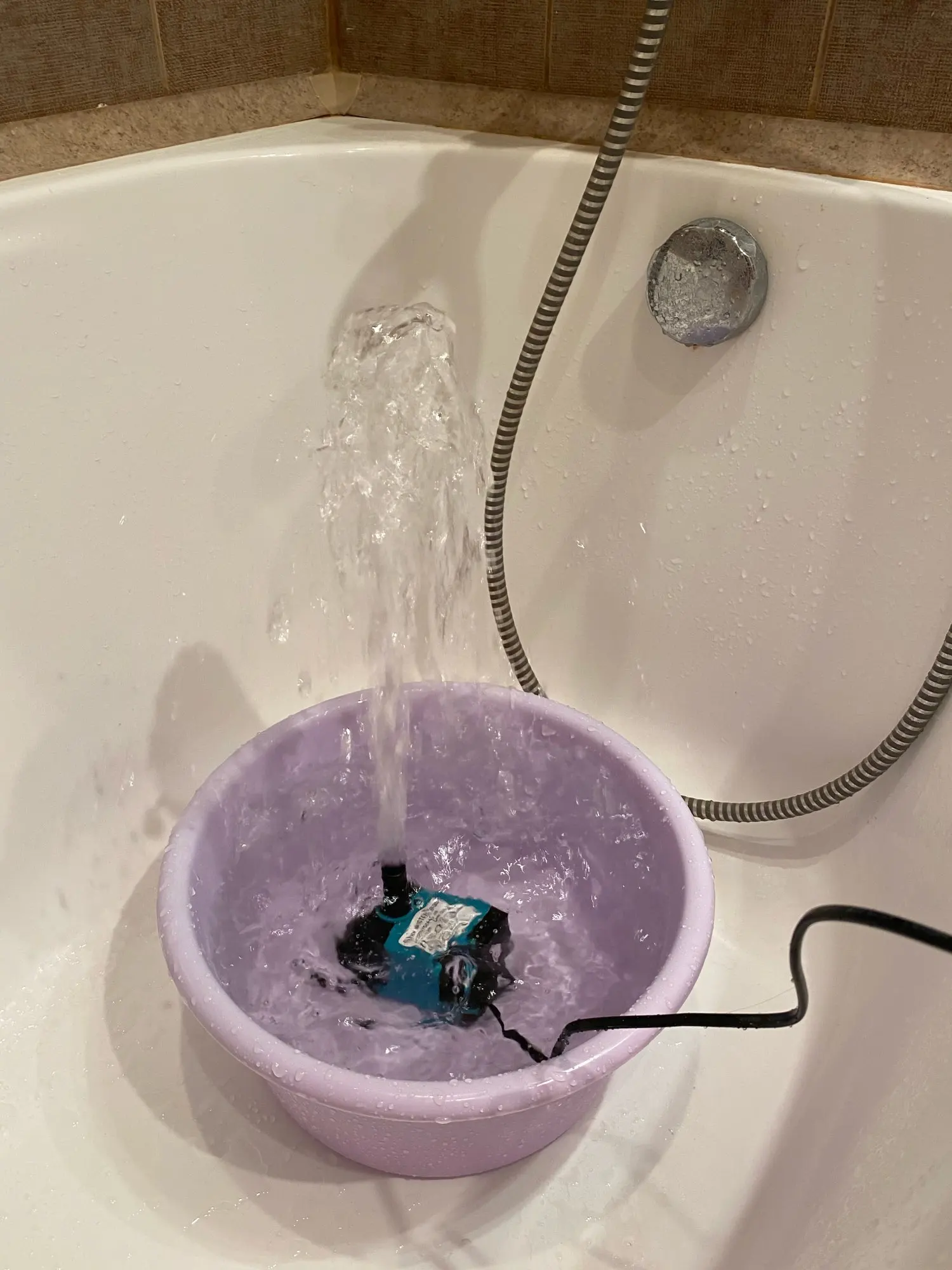 Работает тихо. Проверял в тазу, насколько будет шуметь в ёмкости не знаю. Но думаю будут тихо за счет грунта