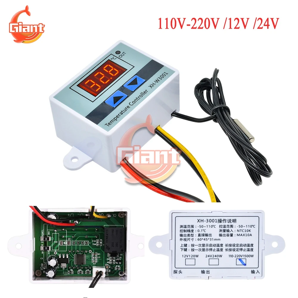 Цифровой регулятор температуры XH W3001, 110 В, 220 В, 12 В, 24 В, фоторегулятор температуры аквариумной воды
