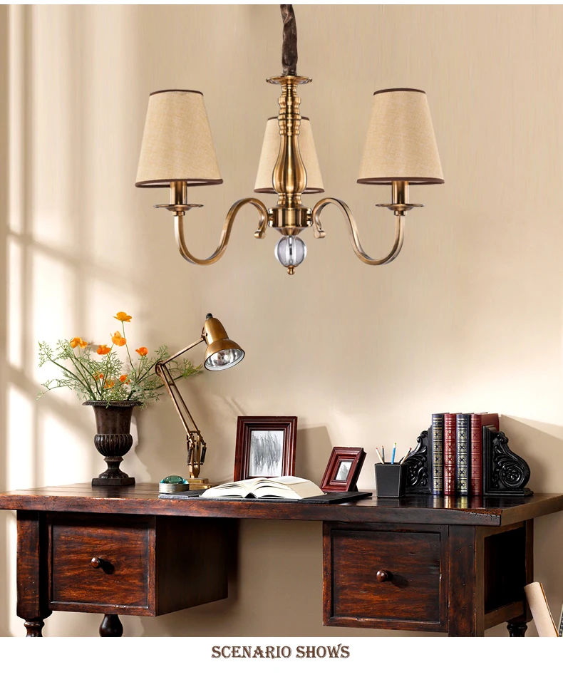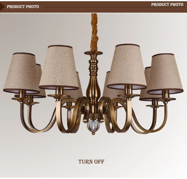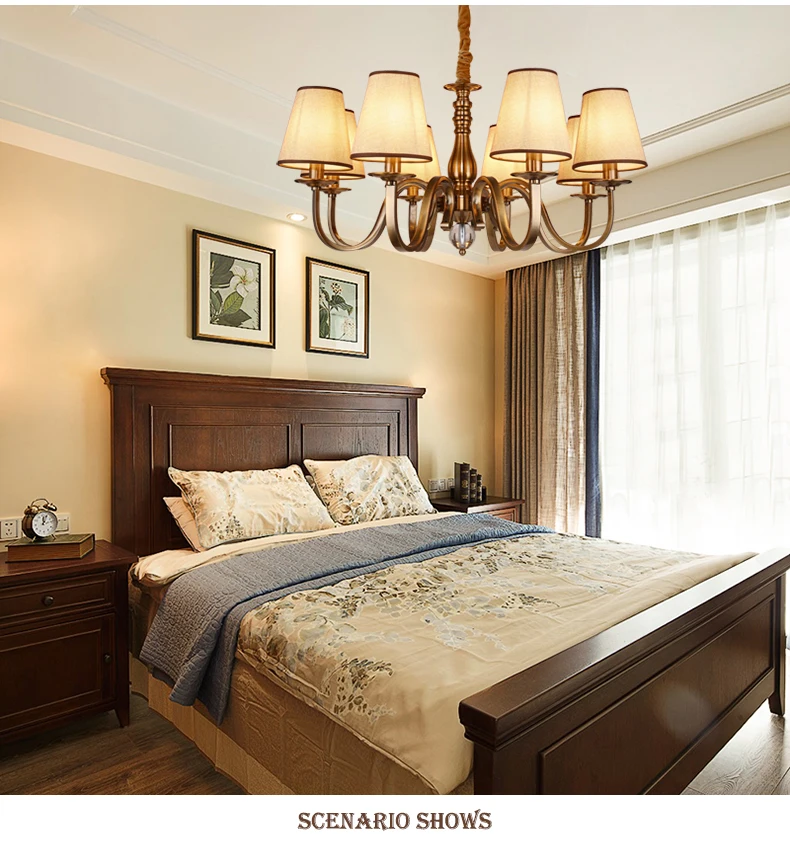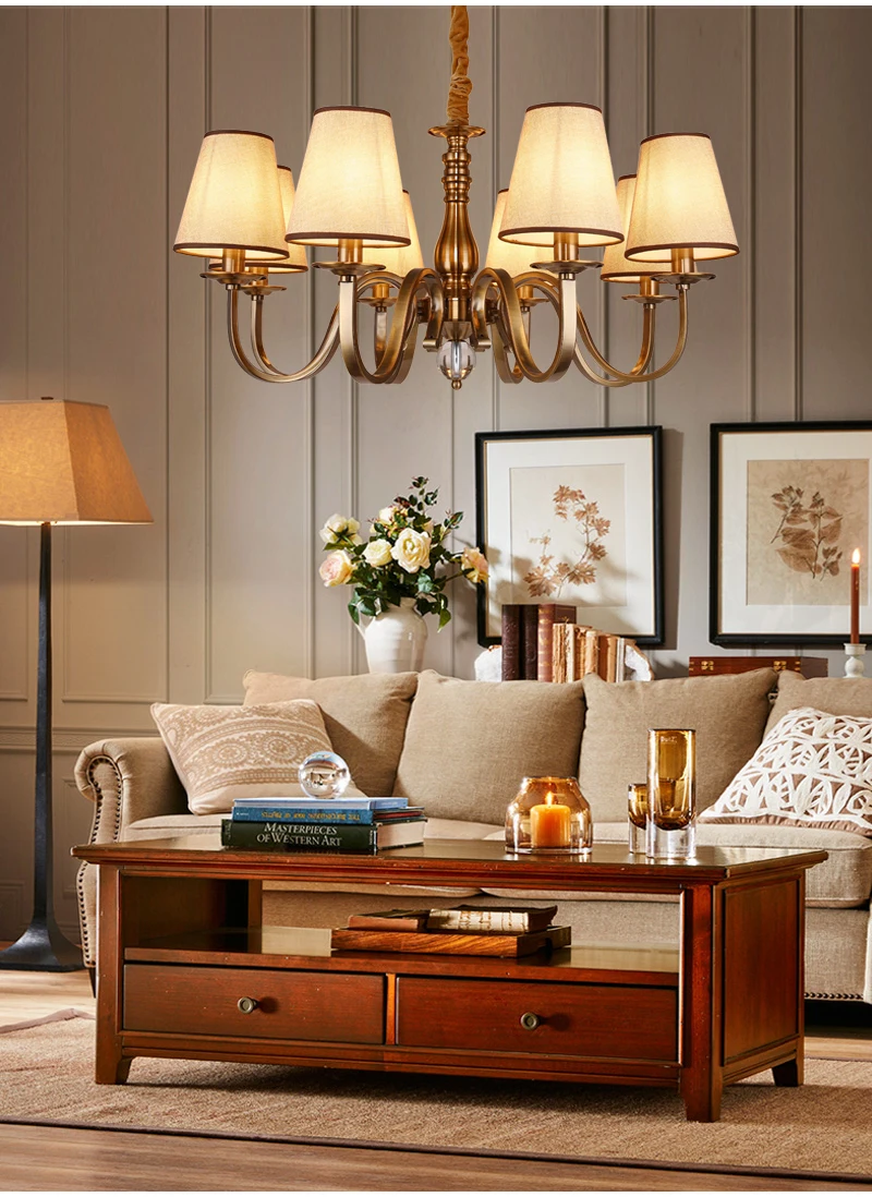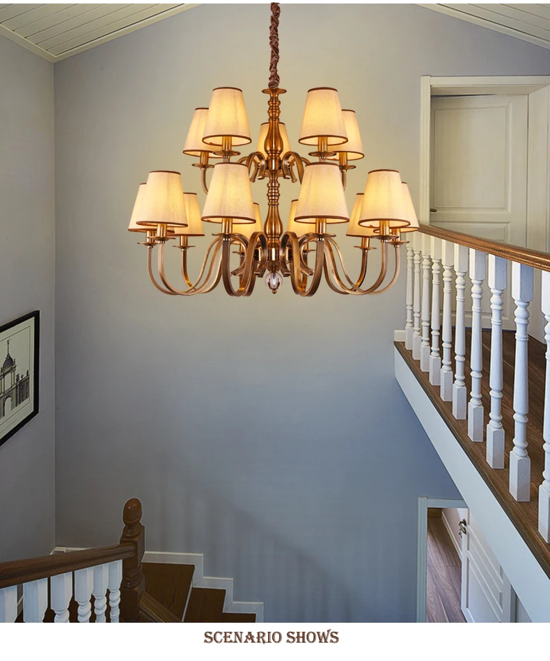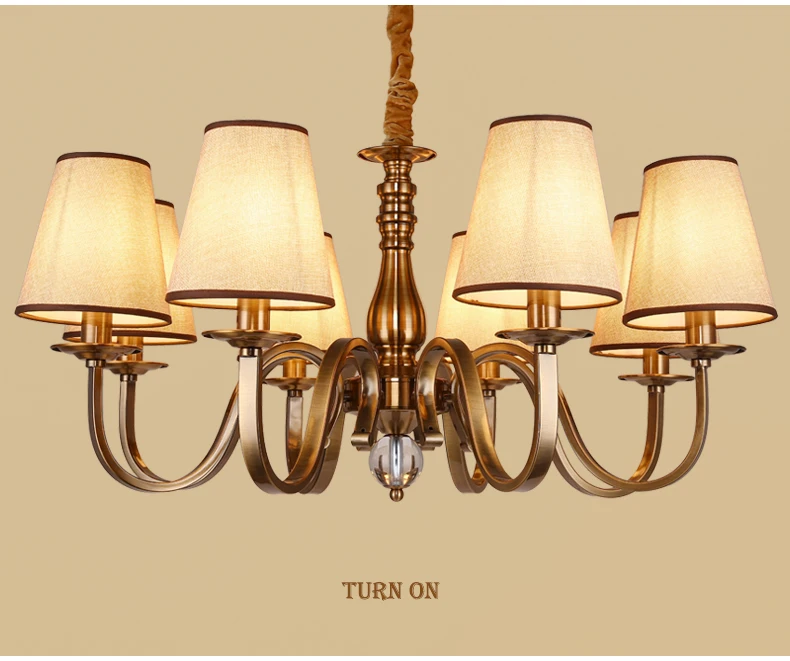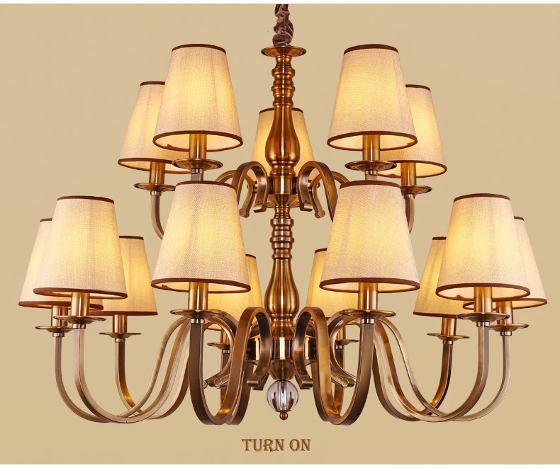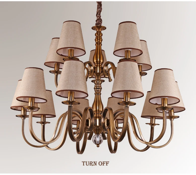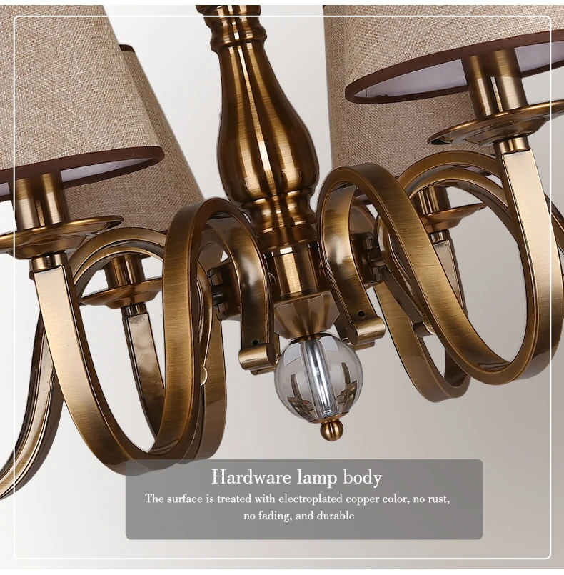 Роскошная люстра для гостиной лампа из кованого железа Имитация меди Домашний Светильник для спальни столовой Современный двухслойный светильник из ткани