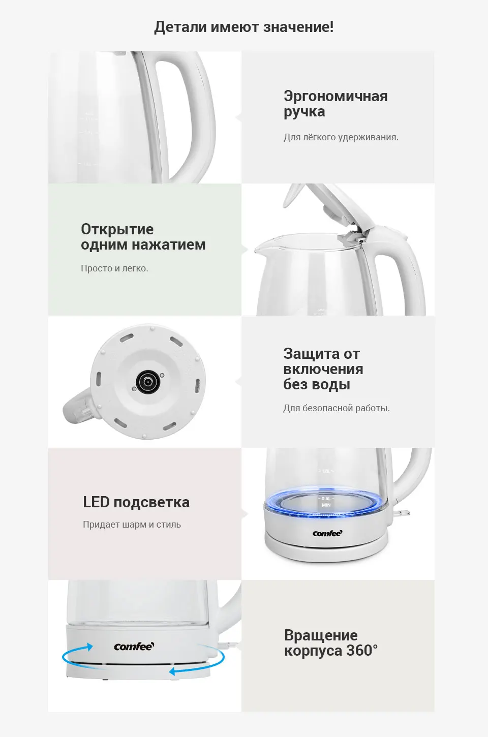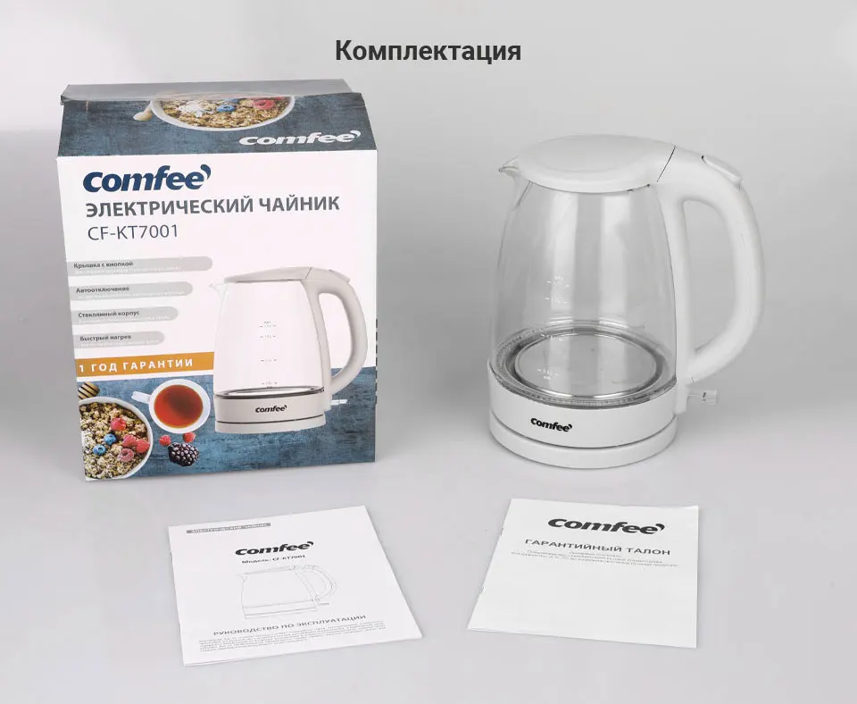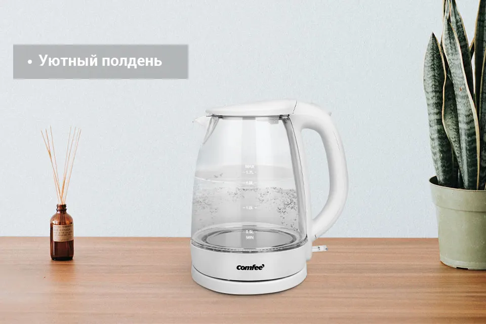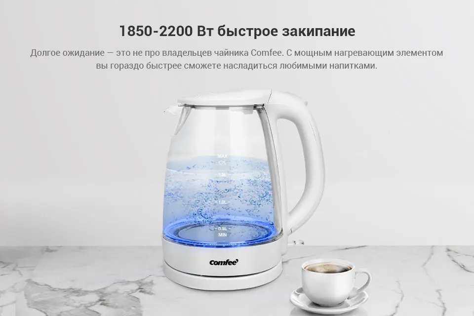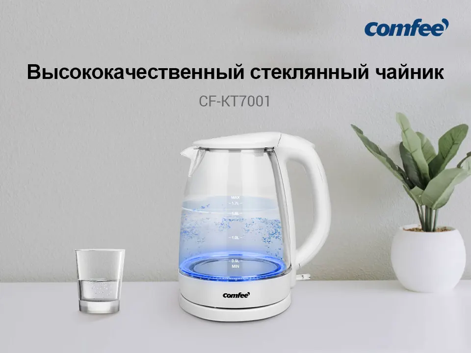 чайник электрический Comfee CF-KT7001 1850-2200 Вт 1,7 л съёмный фильтр и LED подсветка быстрое кипение Molnia