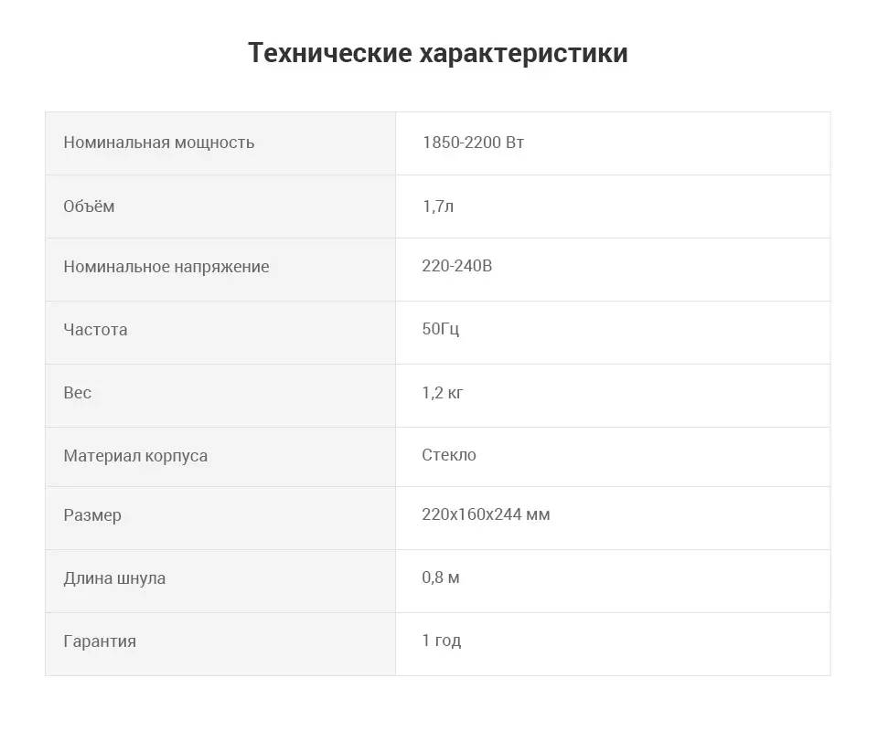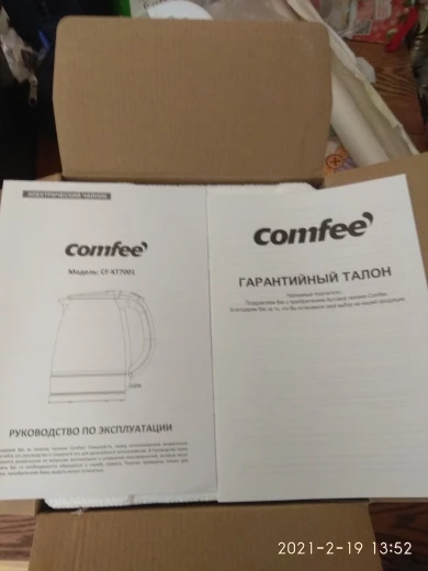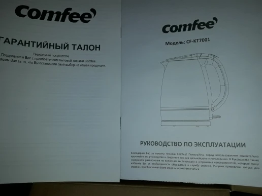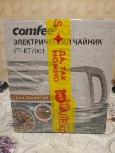 Товар пришёл через 12 дней. Курьер привёз до двери. Чайник обошелся в 1166 руб. Упаковка хорошая, цветная, текст на русском языке. Инструкция тоже на русском языке, подробная, фирменная, производитель заморочился, что говорит о том, что бренд собирается на нашем рынке закрепиться. Сам чайник имеет вес, тяжелее чем были стеклянные чайники до этого, других брендов, на мой взгляд это хорошо. Пластик качественный, вообще не пахнет при нагревании. У предыдущих чайников при нагревании был запах пластика. Чайник понравился, рекомендую