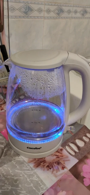 отличный чайник. Приятная подсветка, не сильно шумный при нагреве. удобный в использовании. Товар пришел быстро, в течении недели курьером до двери.