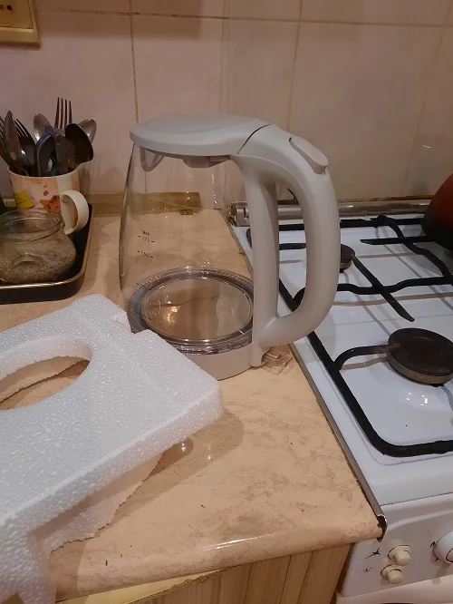 Были проблемы с доставкой, пришлось открыть спор, но продавец молодец перенаправил товар по почте, т.ч. товар дошел в наше на отшибе!!! Сам чайник просто класс, никакого запаха, выглядит замечательно, не шумный, дети в восторге от подсветки!!!