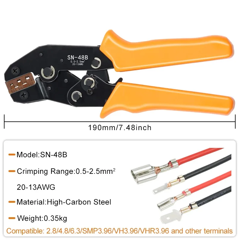 SN-48B обжимные клещи для проволоки 0,5-2,8 мм2 20-13AWG прецизионная губка с язычком 4,8 6,3 мм Клеммная коробка автомобильный соединитель провода Электрика