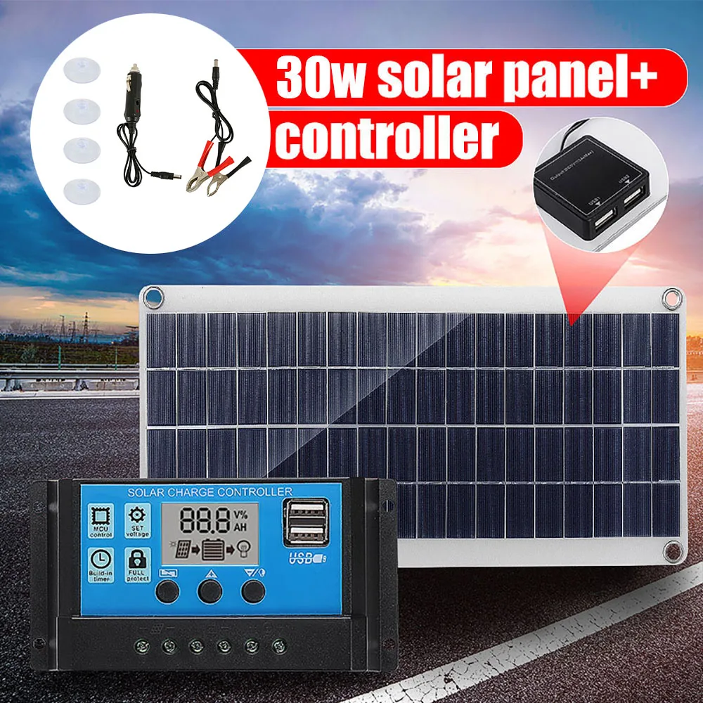 Комплект солнечной панели 30 Вт 18 в с зарядным контроллером, Монок...