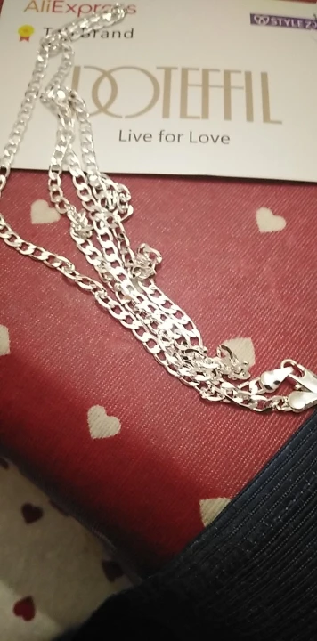 الشكل جميل لامع وبراق وخفيف الوزن و رقيق ، لكن : (الفضة المستخدمة ليست ❌925 استرليني❌ ) انها فضة صينية كما مذكور في الوصف وكما انها ليست عيار ❌925❌ وشيئا اخر القفل المستخدم ليسا من الفضة ويمكنك ان تكتشف هذا بتقريب مغنطيس قوي الى القفل في القلادة وسترا انه (ينجذب) . والى من يبحث عن الجمالية واللمعان فقط وليس الى (معيار الفضة) يمكنك ان تطلبه فهو جميل .