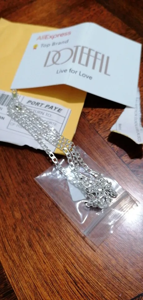 Хорошая Сторона покупки: очень красивое ожерелье, именно так, как описано в публикации. Мне это нравится! Отрицательная сторона покупки: 2 месяца и 10 дней, чтобы получить, и, наконец, и не менее важно; Не должно предложить продукт, как серебро, когда на самом деле цепи сделаны из материала, называемого alpaca, «Это не серебро», это называется вводящей в заблуждение рекламой. Это ошибка! Будьте осторожны с этим. Спасибо