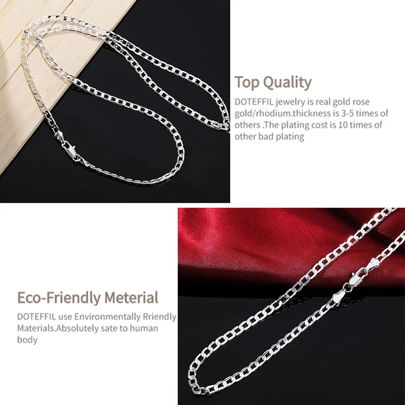 Ожерелье DOTEFFIL из стерлингового серебра 925 пробы, 16/18/20/22/24/26/28/30 дюйма, 4 мм, боковое ожерелье для женщин и мужчин, модные свадебные очаровательные украшения