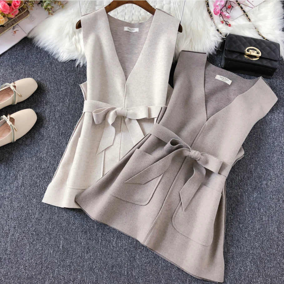 Шерстяной жилет, пальто, Осень-зима, женский жилет без рукавов, пояс на талии, женский жилет, куртка, пальто