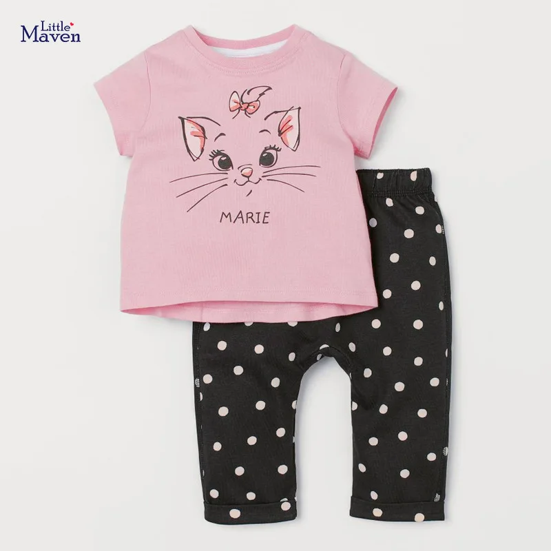 Комплект для девочек Little Maven, Новинка лета 2021, модные комплекты с котом, удобная и красивая одежда для маленьких девочек, 100% хлопок, для детей от 2 до 7