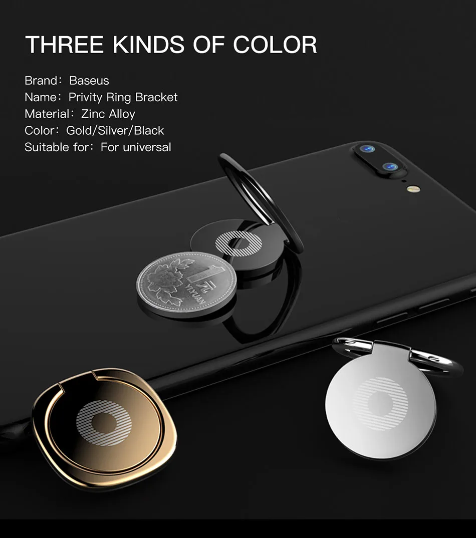 Кольцо-держатель для телефона BASEUS, универсальное, 3 цвета, металл