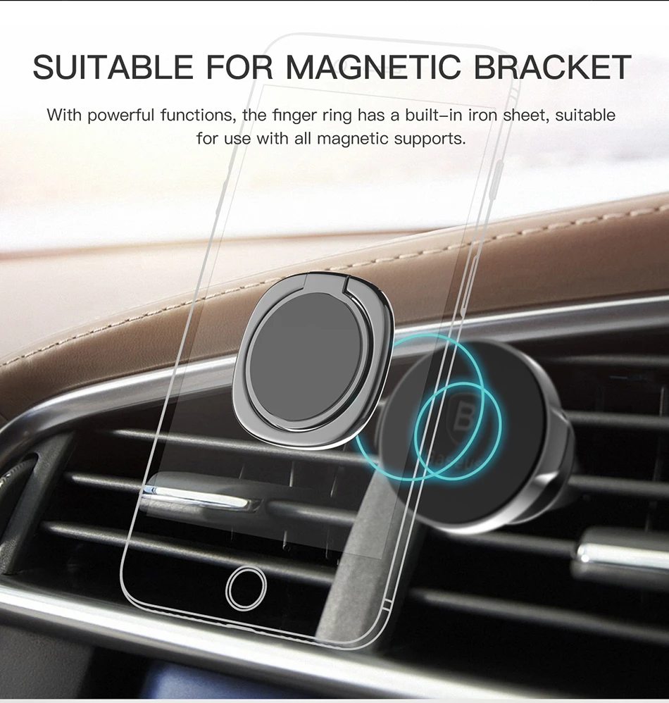 Автомобильный держатель Baseus с кольцом на палец, Магнитная подставка для Мобильный телефон телефона, металл, вращение на 360 градусов