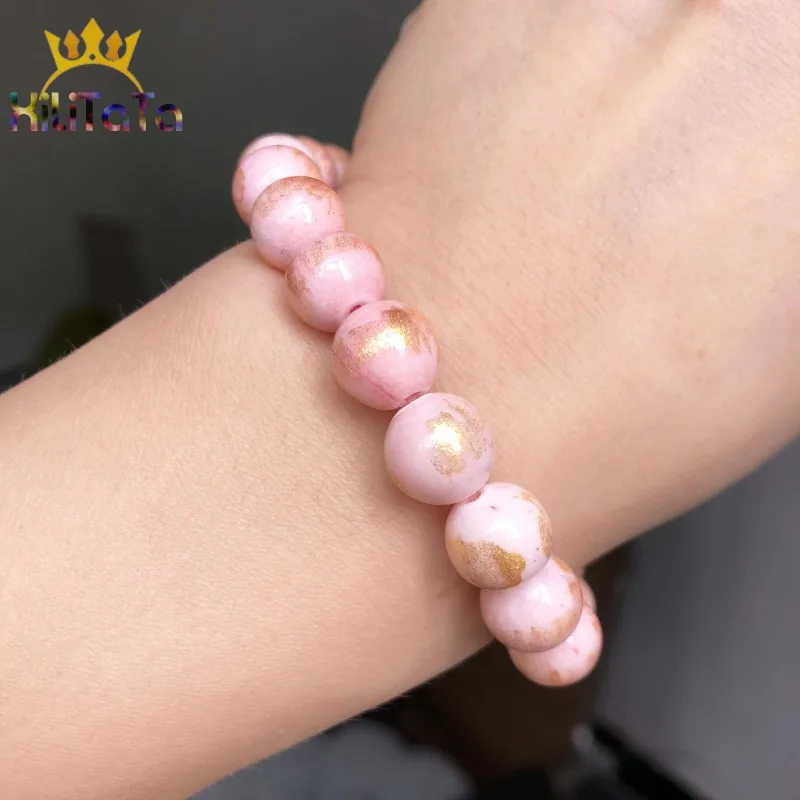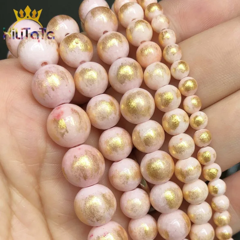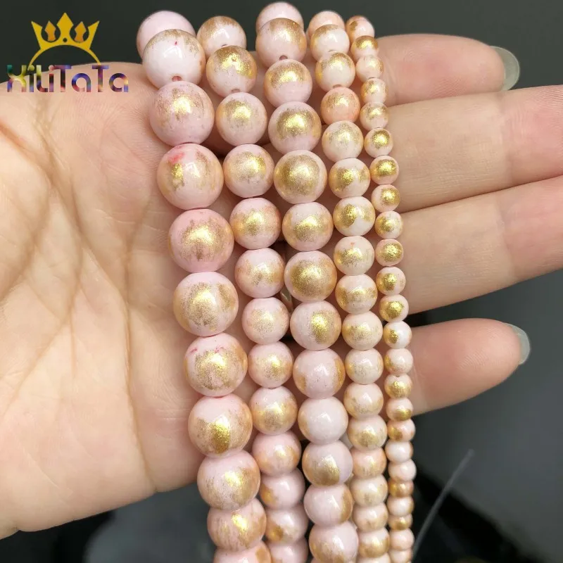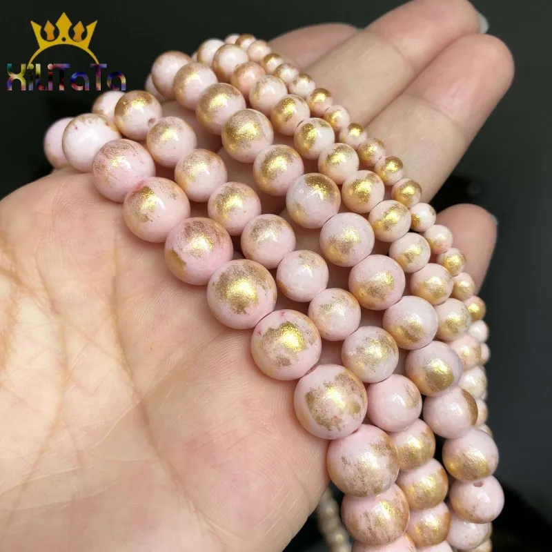 Бусины из натурального камня с покрытием под розовое золото, круглы...