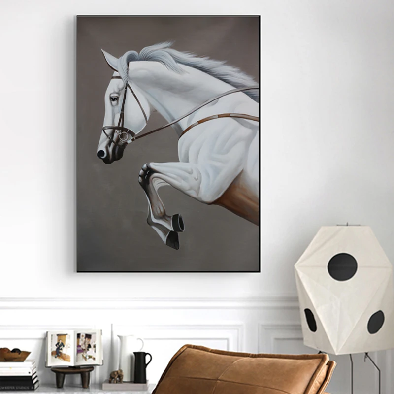 Современная Скандинавская Картина на холсте с изображением белой лошади для украшения стен