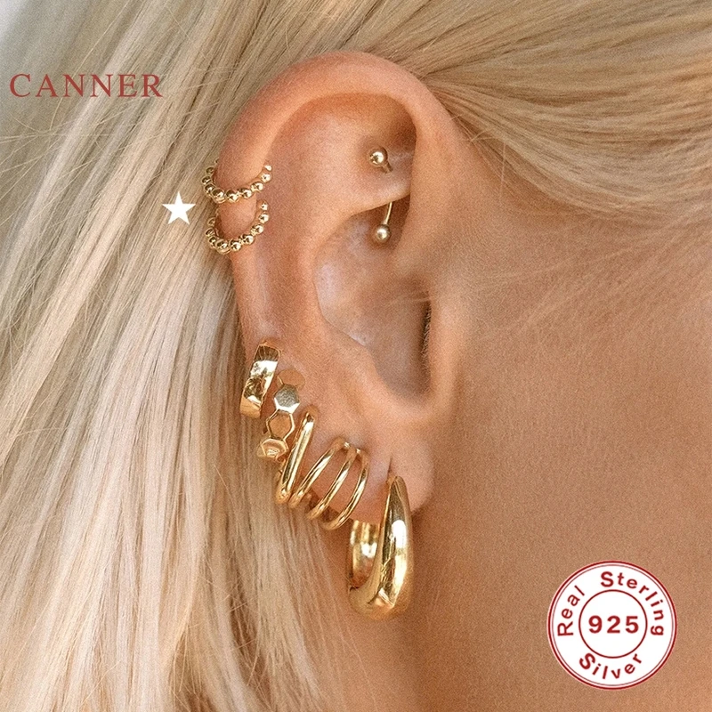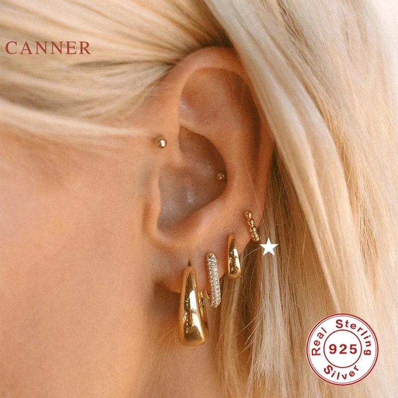 Женские круглые серьги CANNER, серьги-кольца из стерлингового серебра 100% пробы с цирконием, ювелирное изделие, золотистые корейские женские серьги