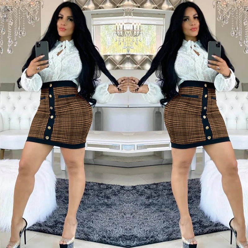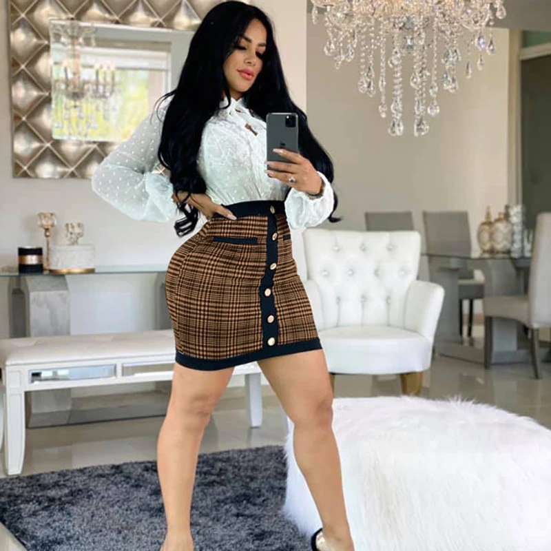 Плед пуговицы спереди короткие юбки женские эластичные летние высокой талией bodycon Мини юбка-карандаш 90s egirl пикантные c95